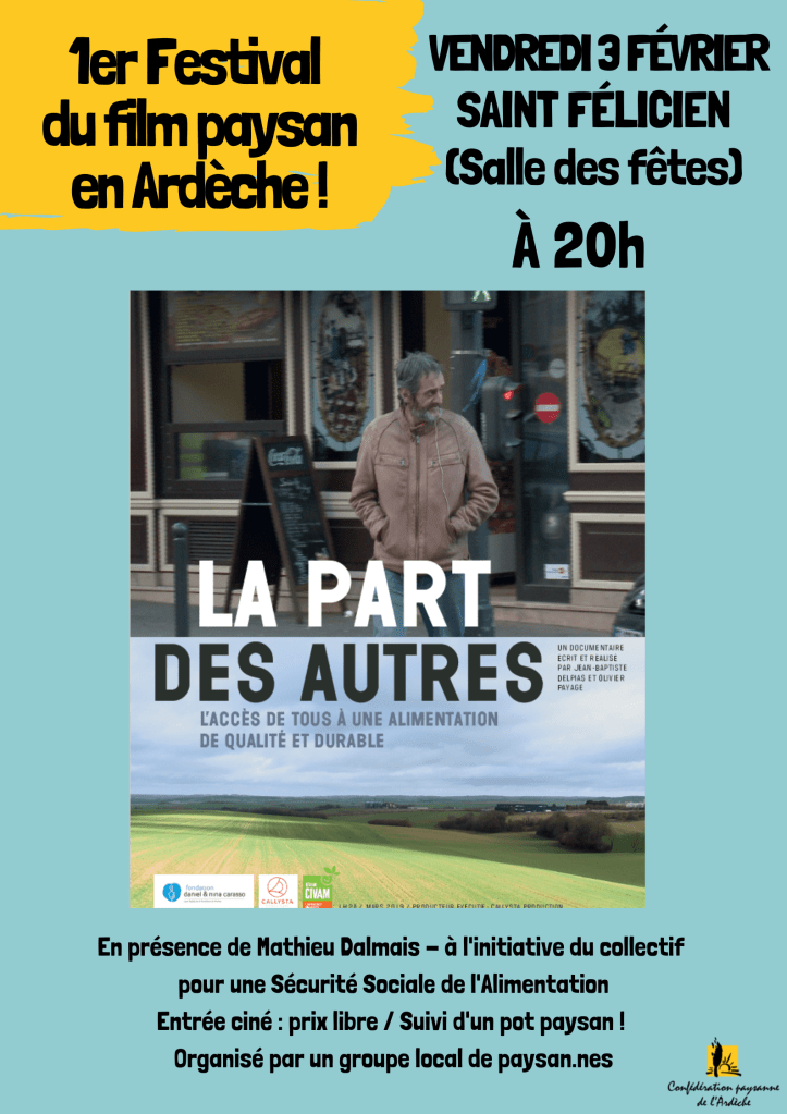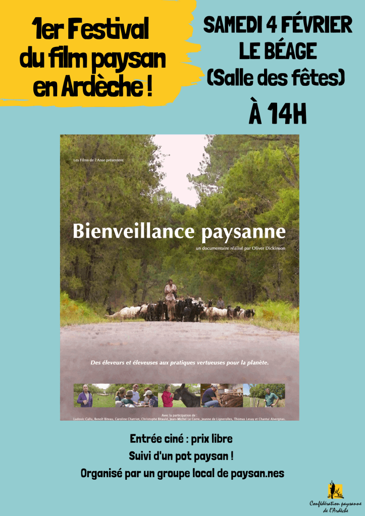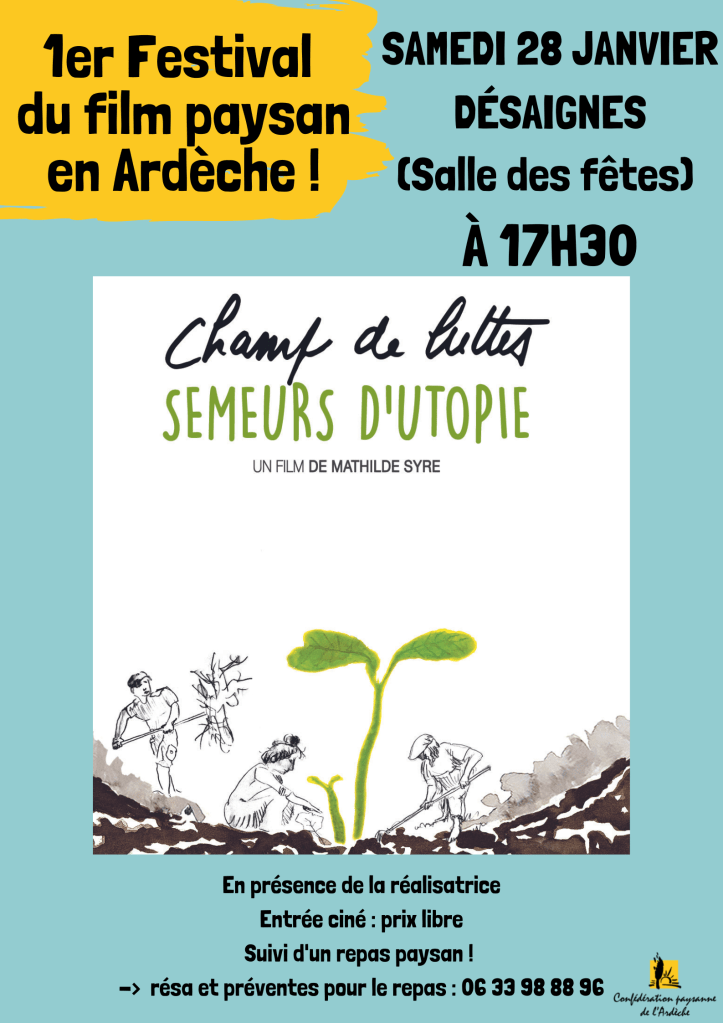 À travers ce festival, les paysannes et les paysans de la Confédération paysanne vous proposent de venir à leur rencontre dans différents lieux du département au gré de 9 projections de films et documentaires autour de thématiques agricoles et alimentaires.