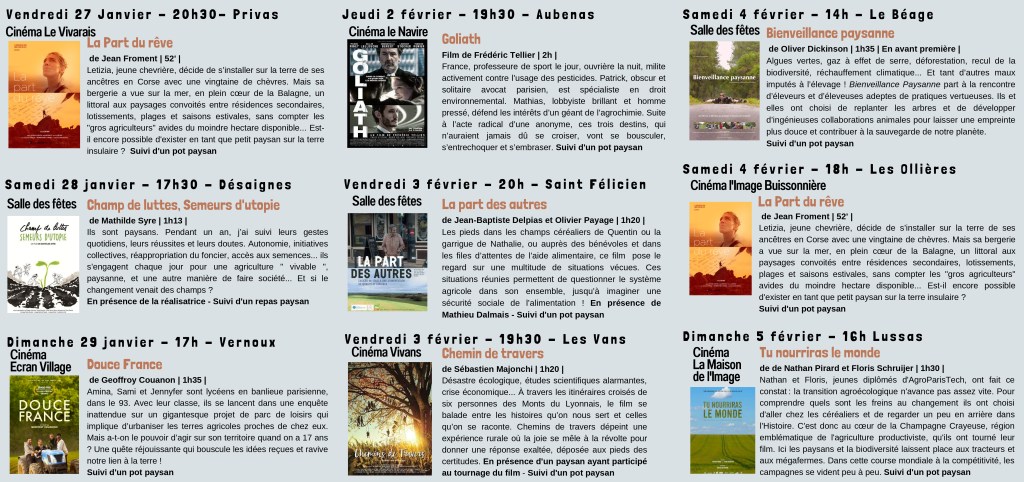 >> Télécharger le programme complet – Dépliant du festival 2023 du film paysan en Ardèche