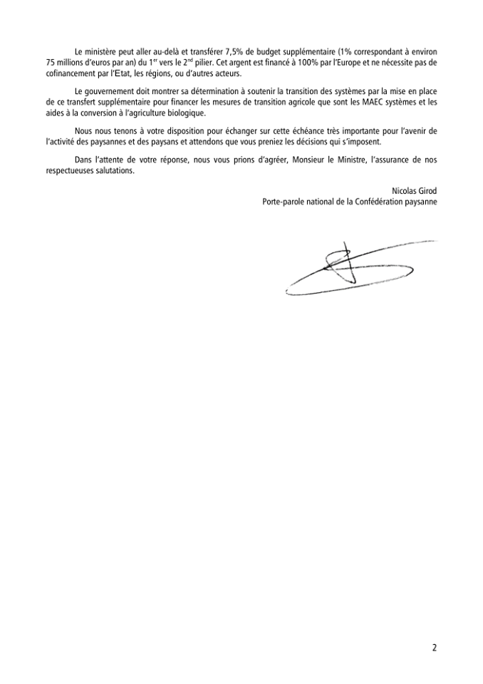 courrier transfert 2eme pilier p2 Published on 5 novembre 2019 in PAC 2020 : le Ministre doit augmenter le budget pour la transition !Pleine résolution (678 × 960) ← Précédent