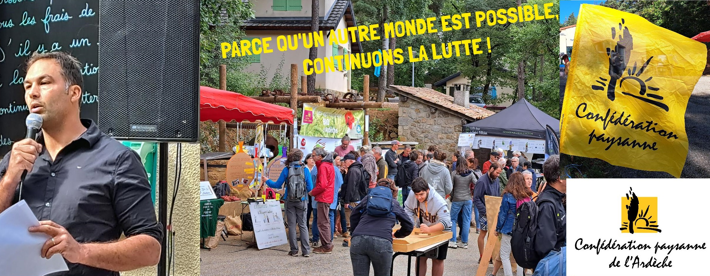 INTERVENTION D’AURÉLIEN MOURIER, CO-PORTE-PAROLE DE LA CONFÉDÉRATION PAYSANNE DE L’ARDÈCHE – SAMEDI 23 SEPT. – FÊTE DE L’AGRICULTURE PAYSANNE A SAINT VICTOR >> Fête 2023 à St Victor – les Photos !