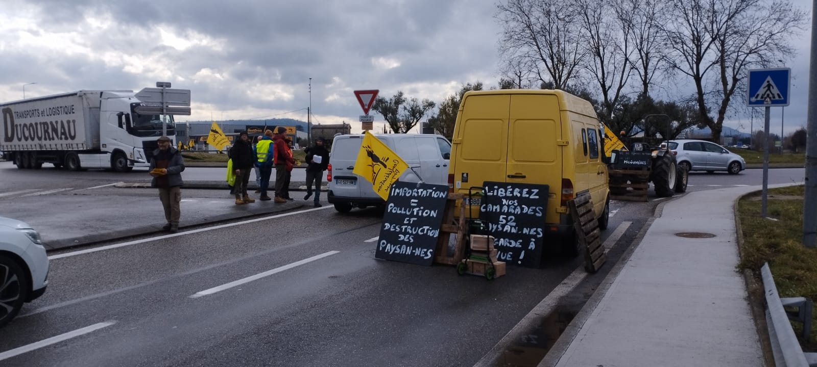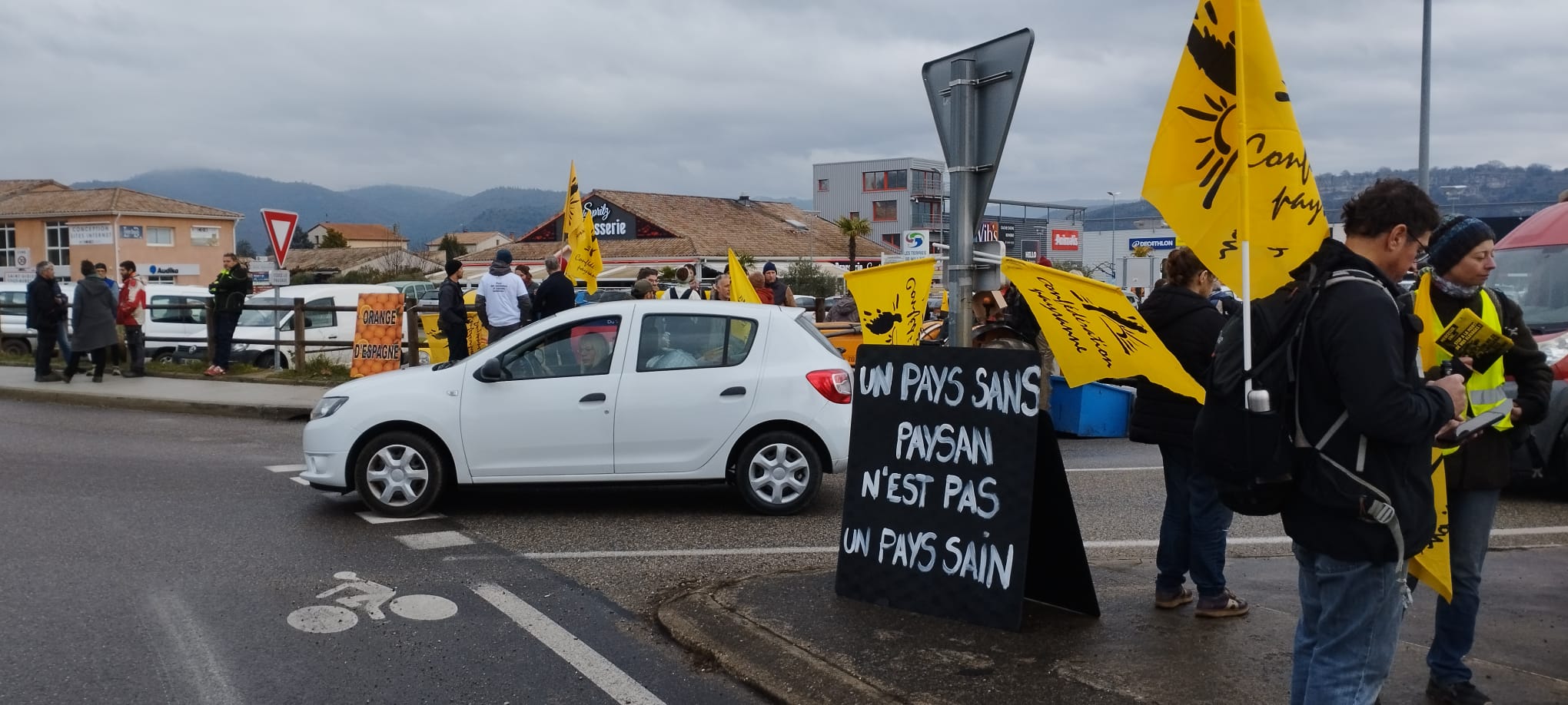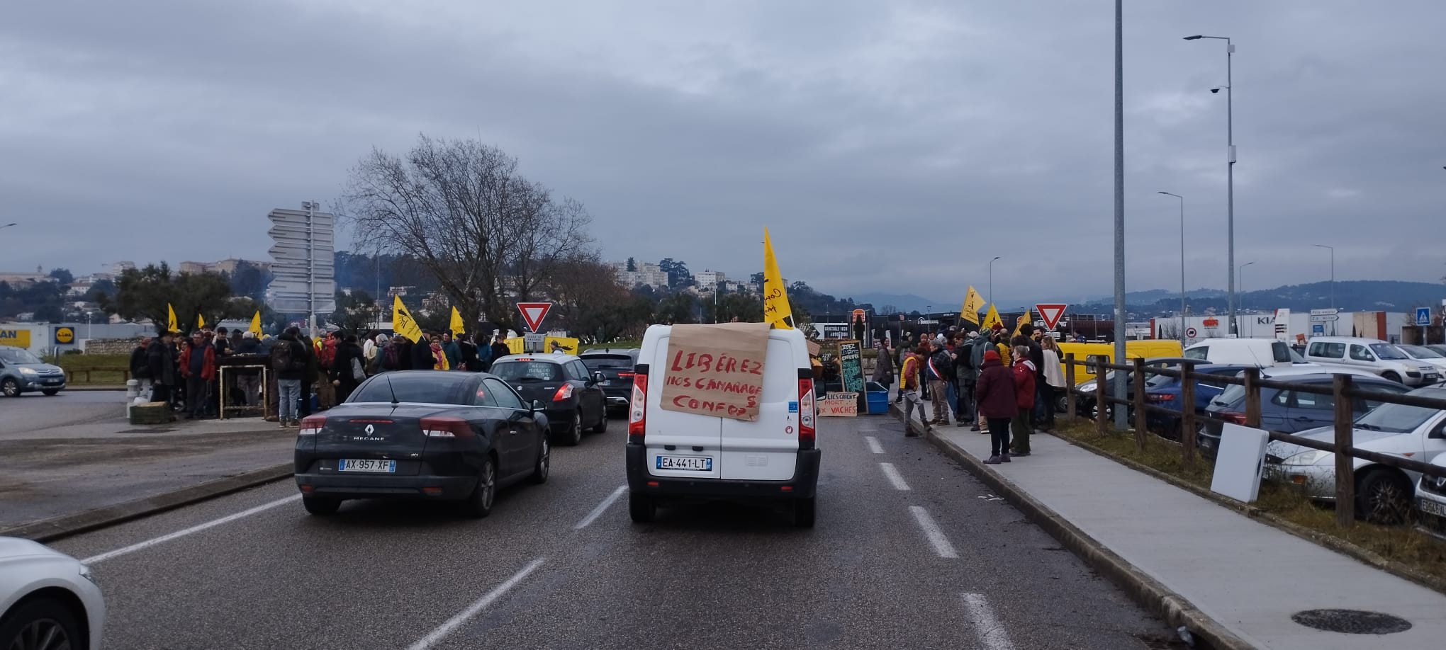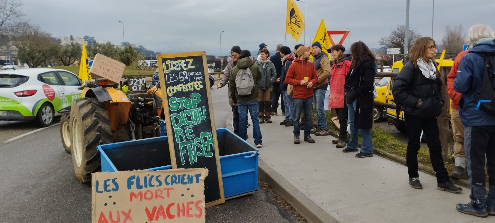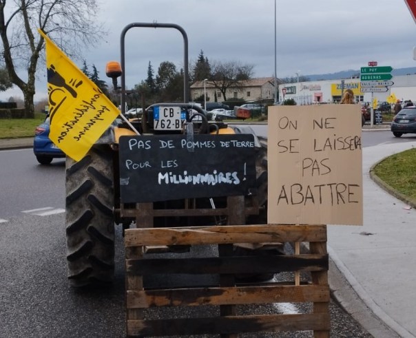 La Confédération paysanne de l’Ardèche a de nouveau appelé à une mobilisation paysanne qui a réuni + de 250 paysan-nes et citoyen-nes à Aubenas pour une opération « Barrage filtrant » sur le rond-point de Millet… opération permettant de montrer notre détermination et de continuer à expliquer nos revendications à la population. Nous remercions d’ailleurs tou-tes les automobilistes pour leur soutien et leur grande compréhension.