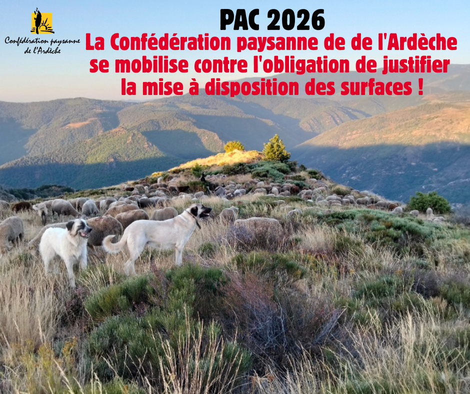 Nous rappelons que la majorité des terres agricoles en Ardèche sont utilisées par les paysan.nes sans titre de propriété mais via un bail rural (écrit ou verbal) ou une mise à disposition gratuite. Au-delà de son caractère injuste, cette nouvelle règle est donc une catastrophe pour l’agriculture ardéchoise et plus particulièrement pour tout le secteur de l’élevage… le pastoralisme étant gravement menacé !