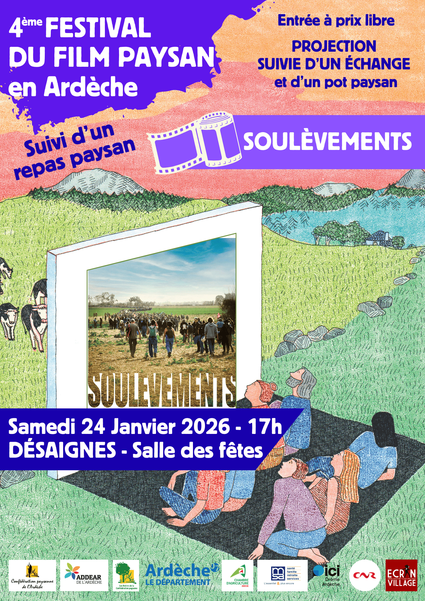À travers ce festival, les paysannes et les paysans de la Confédération paysanne vous proposent de venir à leur rencontre dans différents lieux du département au gré de 15 projections de films autour de thématiques agricoles et alimentaires.