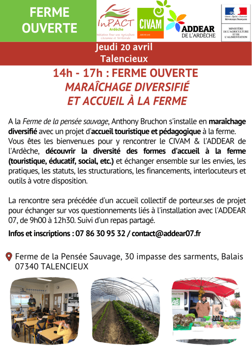 Ferme ouverte 20 avril – Talencieux – CIVAM07 ADDEAR07 V2 Published on 14 avril 2023 in AgendaPleine résolution (1414 × 2000) ← Précédent Suivant →