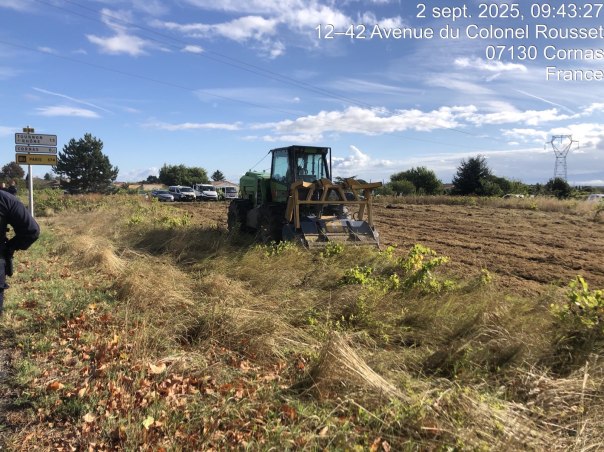 Mardi 2 septembre, la Communauté de Communes Rhône Crussol (CCRC), avec l’aval de la préfecture, a sorti les grands moyens pour détruire, le plus vite possible, le maximum de terres entre la RD86 et la voie ferrée. Une broyeuse est ainsi arrivée dès 8h du matin, escortée par la police afin de raser plusieurs parcelles de vignes.