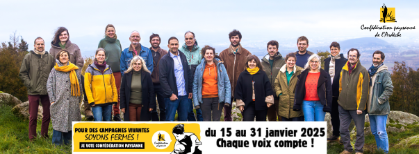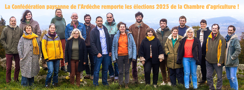 La Confédération paysanne de l’Ardèche continue son travail collectif pour l’agriculture ardéchoise et ses paysan-nes en proposant un AUTRE CHEMIN pour une agriculture qui rémunère les paysannes et les paysans tout en prenant en compte la réalité de la transition nécessaire des fermes et la nécessité de préserver un cadre permettant l’installation de paysans nombreux dans les années à venir.