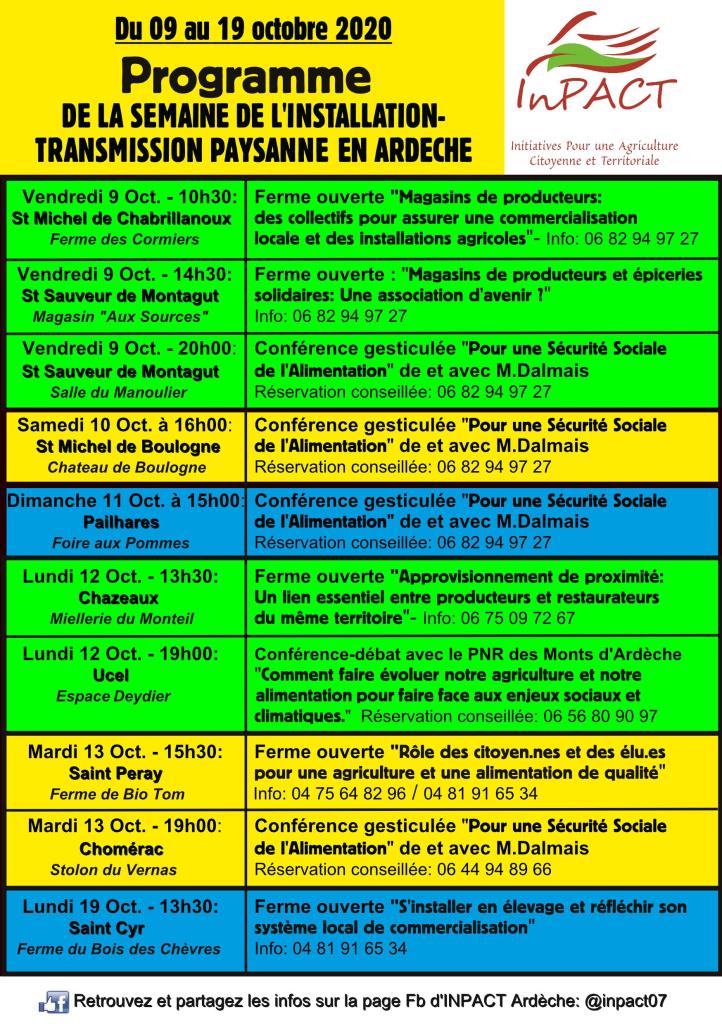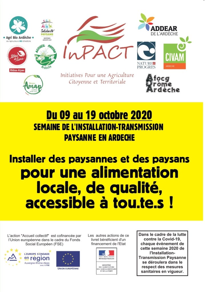 – PAGE ICI avec le détail des actions ouvertes au public lors de la semaine de l’installation-transmission paysanne 2020 en Ardèche