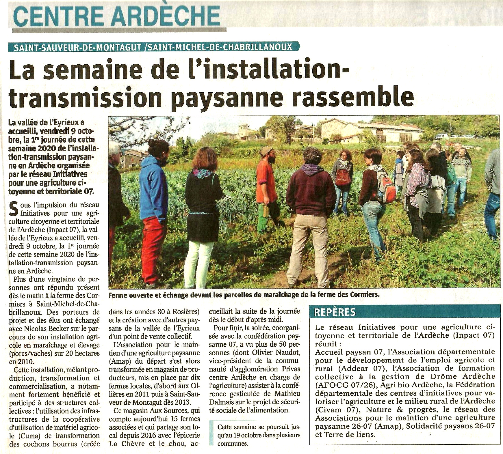 – PAGE ICI avec le détail des actions ouvertes au public lors de la semaine de l’installation-transmission paysanne 2020 en Ardèche
